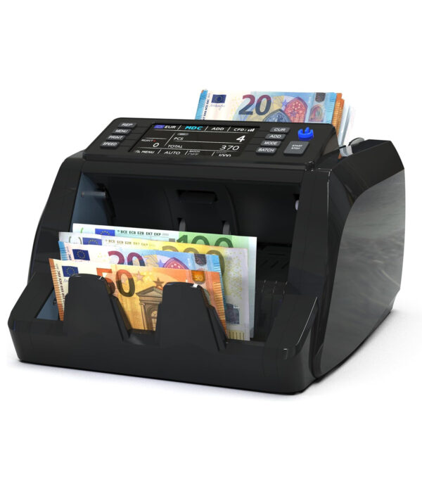 Rappresenta il top di gamma delle valorizzatrici presenti attualmente sul mercato: vi permetterà di ottenere il valore totale e parziale di ciascuna delle valute inserite e allo stesso tempo verificare la presenza di banconote false o deteriorate, riconosce le banconote false più sofisticate attualmente in circolazione, è in grado di riconoscere ben 8 valute diverse riportandone il valore (EUR, GBP, CHF, USD, SEK, PLN, TRY e DKK).
